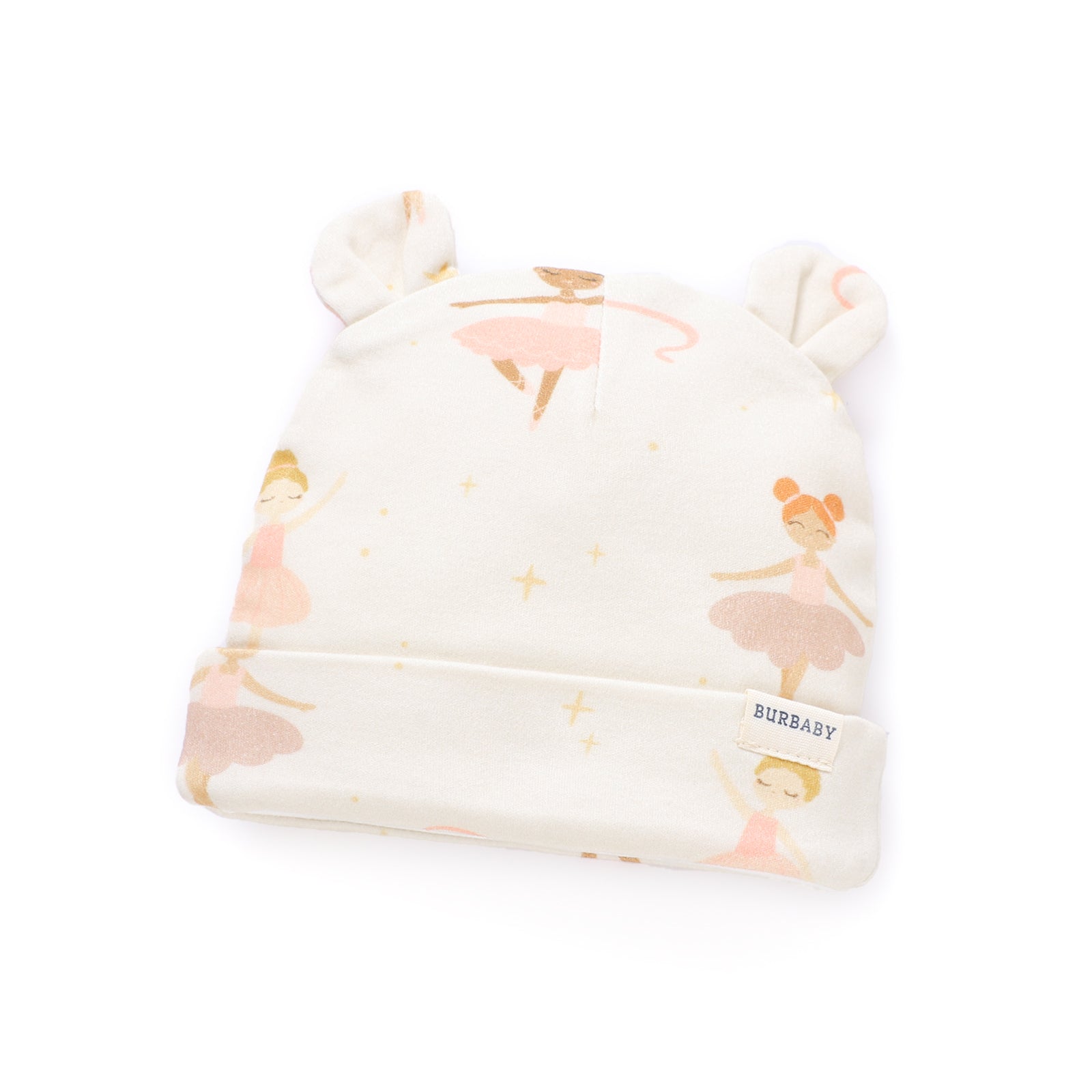 Add a touch of sweetness to your little one’s outfit with our Ballerina Dreams Bear Beanie Hat, featuring our exclusive ballerina print in soft pink and gold tones.