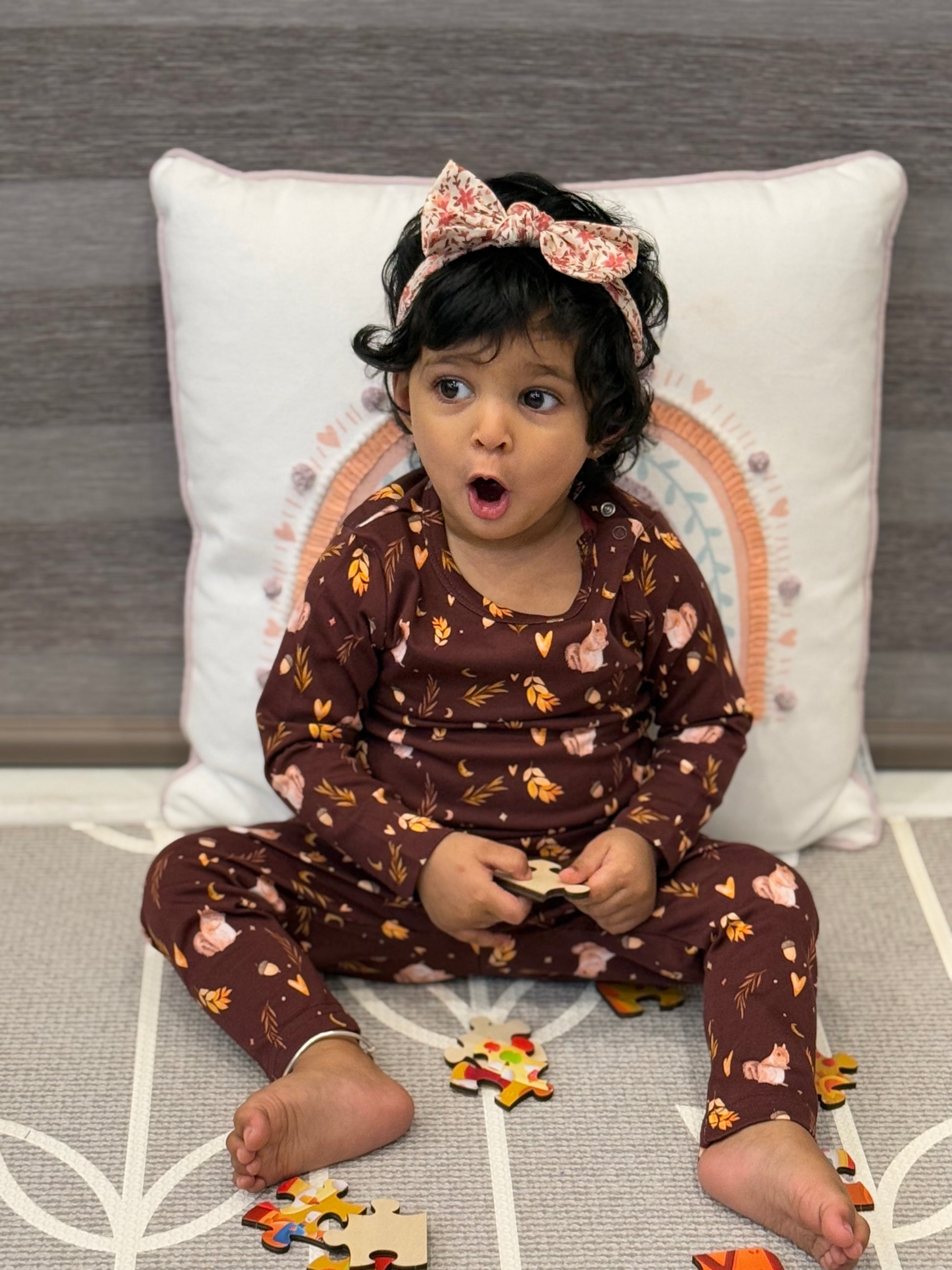 At Burbaby, we blend quality with style. Our Squirrel 2-Piece Set is thoughtfully designed to offer practicality and charm, making it an essential piece for your child’s fall collection. Whether for an adventurous day outdoors or a cozy evening indoors, this set ensures your little one stays comfortable and cute.