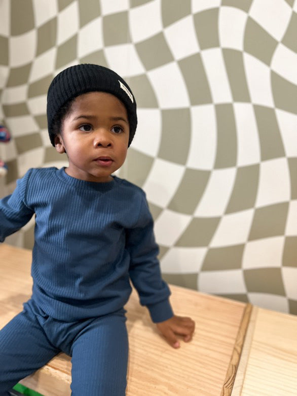 Crafted for ultimate comfort and style, this two-piece lounge set is made from 95% organic cotton and 5% spandex for a soft, breathable, and flexible fit. Designed with a timeless ribbed texture, it’s perfect for play, rest, or everyday wear.